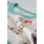 - Este realizat din 100% bumbac organic, delicat cu pielea gingasa a a bebelusului. Printurile sunt cu vopseluri pe baza de apa si toate produsele sunt in concordanta cu standardele GOTS.