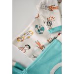 - Este realizat din 100% bumbac organic, delicat cu pielea gingasa a a bebelusului. Printurile sunt cu vopseluri pe baza de apa si toate produsele sunt in concordanta cu standardele GOTS.