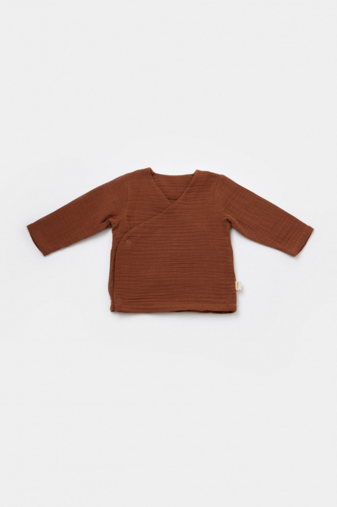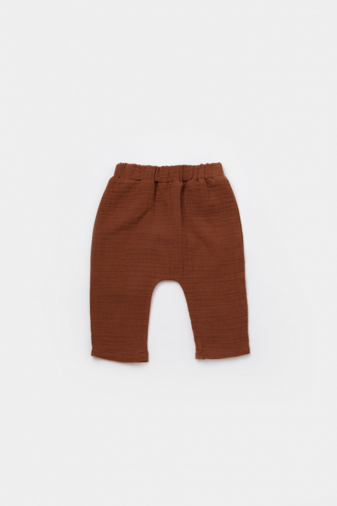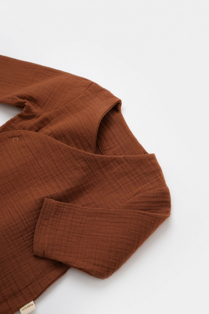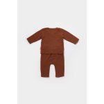 Set bluzita petrecuta si pantaloni lungi din muselina bumbac organic Caramiziu 12-18 Luni