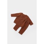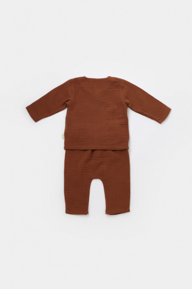 Set bluzita petrecuta si pantaloni lungi din muselina bumbac organic Caramiziu 18-24 Luni