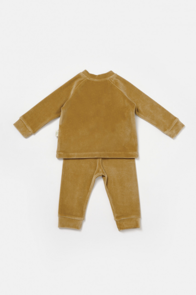 Set bluzita si pantaloni Elefant 80%bumbac organic si 20% poliester Mustar 6-9 luni