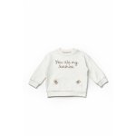 2. Bluza cu maneci lungi, din 100% bumbac are un mesaj brodat pe piept. . Aceasta se inchide cu capse la umar pentru a putea fi imbracat/dezbracat cat mai usor
