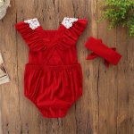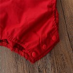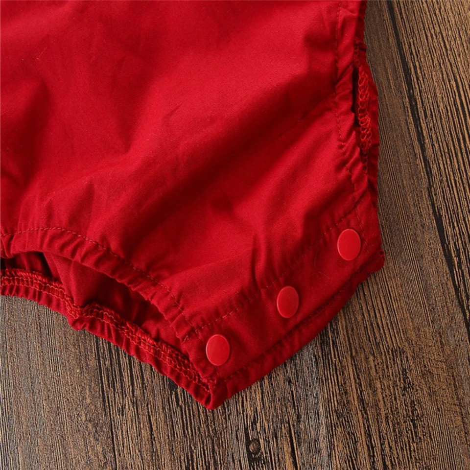Rochita/Body din bumbac rosu este accesorizata cu broderie alba cu floricele in partea din fata.
