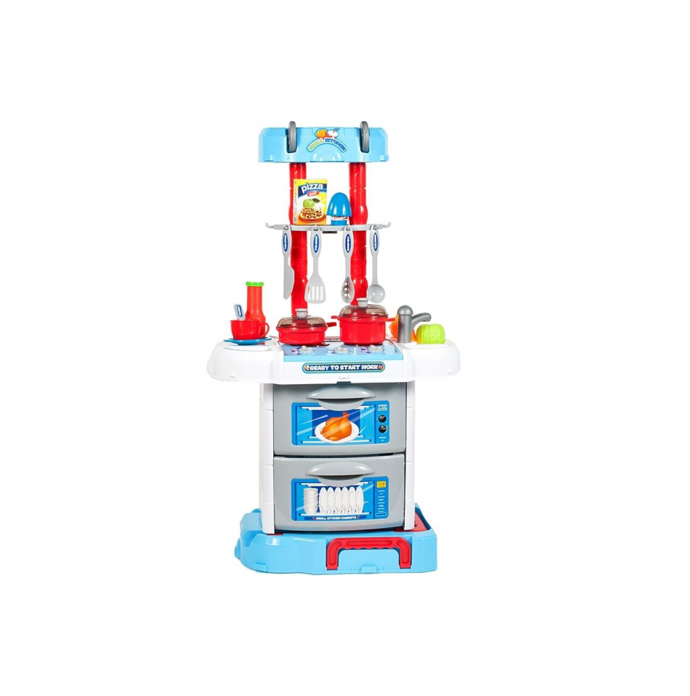 Set bucatarie pliabila 3 in 1 cu accesorii in valiza Albastra
