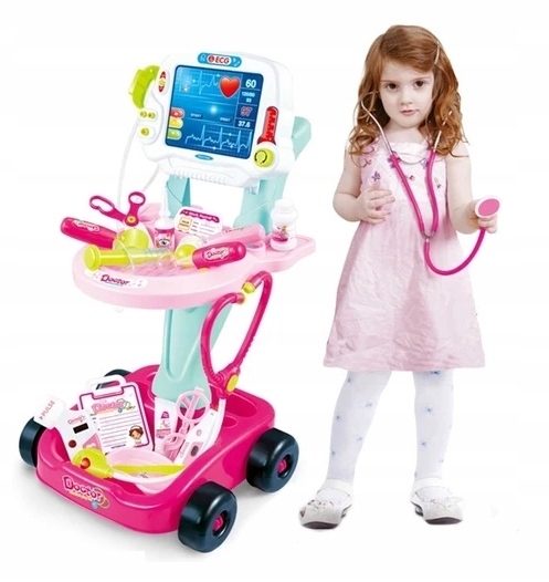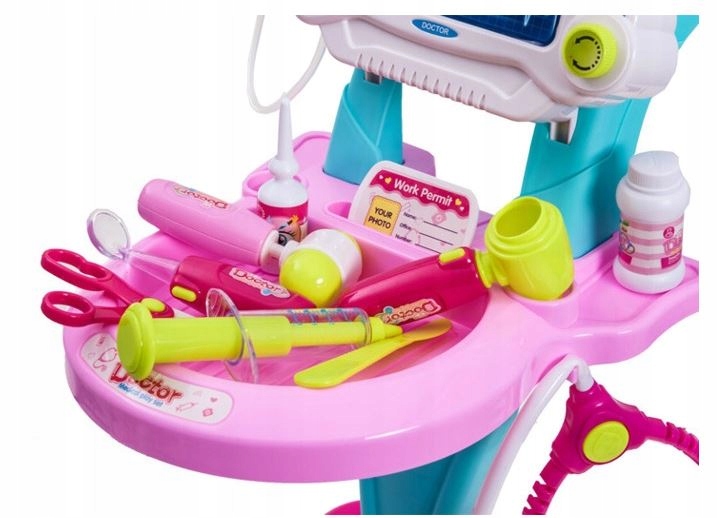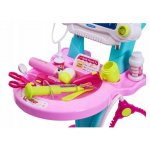 Set cabinet medical Matadi Little Doctor Pink cu panou EKG sunete si lumini, 17 accesorii medicale incluse,roti pentru mutare usoara