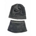 Set caciula cu protectie gat Fleece Gray pentru copii 3-5 ani din bumbac