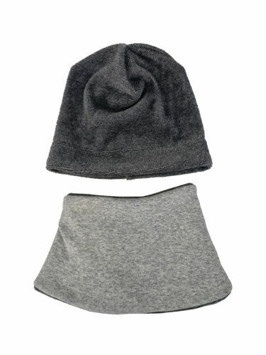 Set caciula cu protectie gat Fleece Gray pentru copii 3-6 luni din bumbac