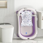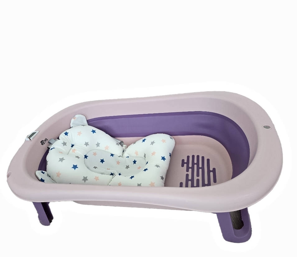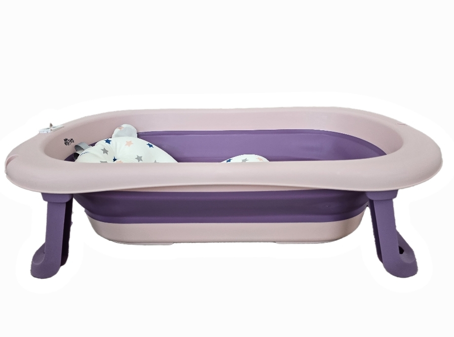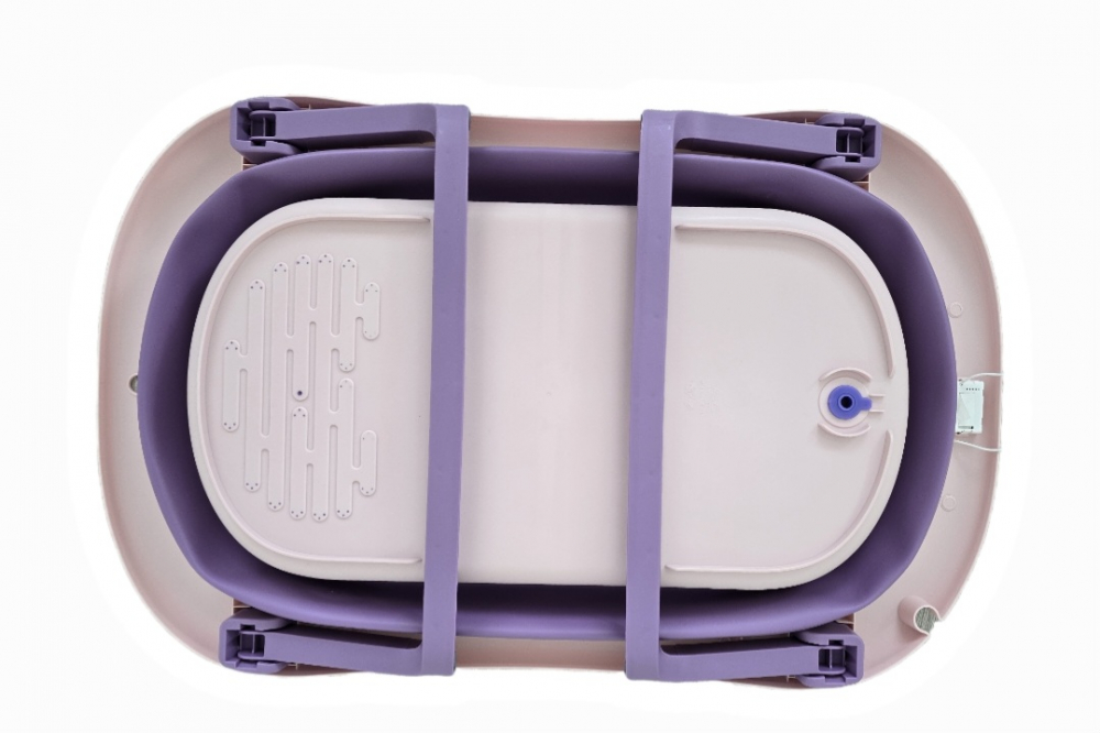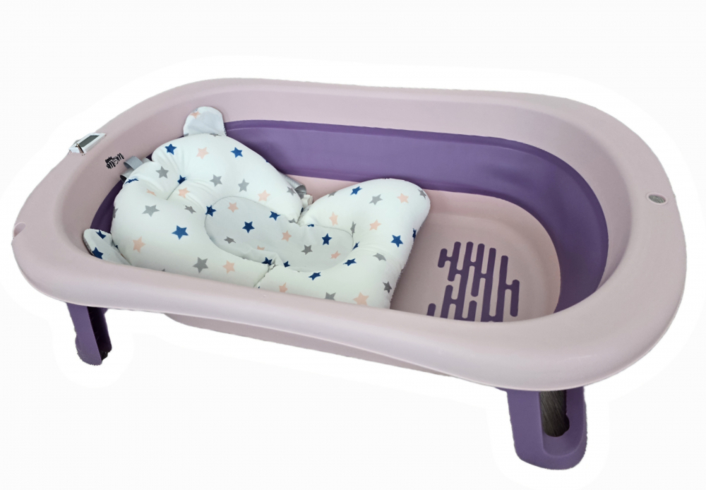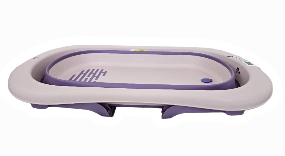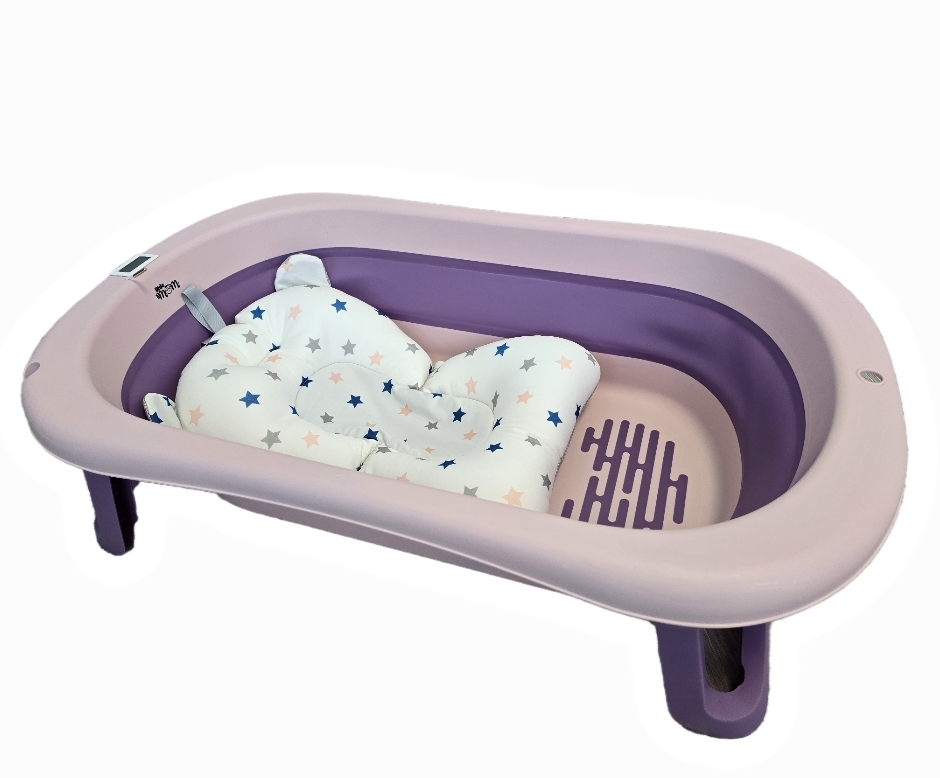 Set Cadita pliabila Little Mom Purple cu termometru integrat, hamac, picioare anti-derapante, dop evacuare, fara bpa, varsta recomandata 0 luni+