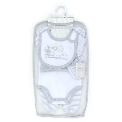 Set cadou bebelusi 5 piese bumbac Welcome to the world marimea 3-6 luni