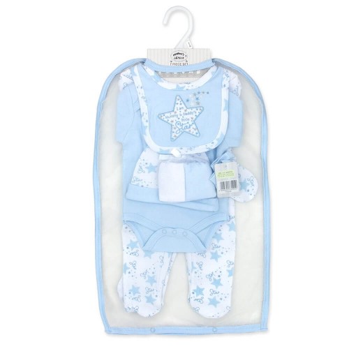 Set cadou hainute pentru bebelusi 7 piese model stelute bleu marimea 3-6 luni