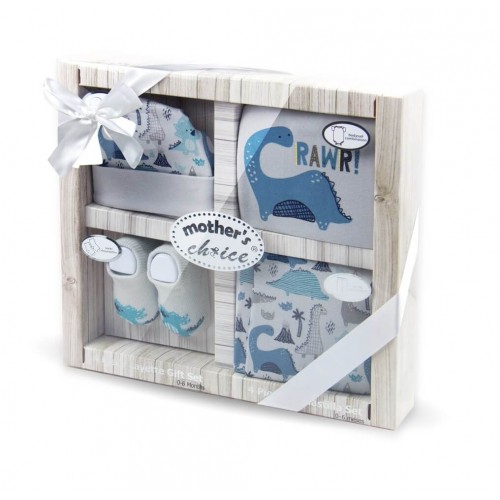Set cadou nou nascuti 4 piese din bumbac model dino