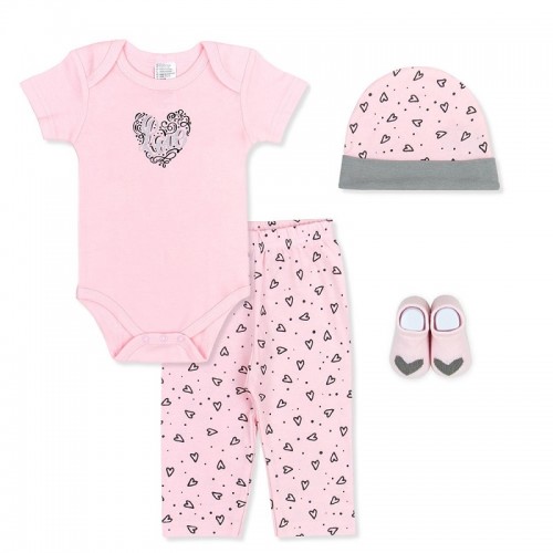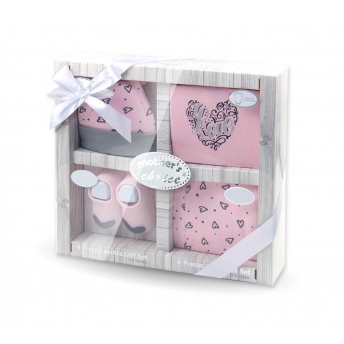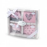 Set cadou nou nascuti 4 piese din bumbac model inimioare roz