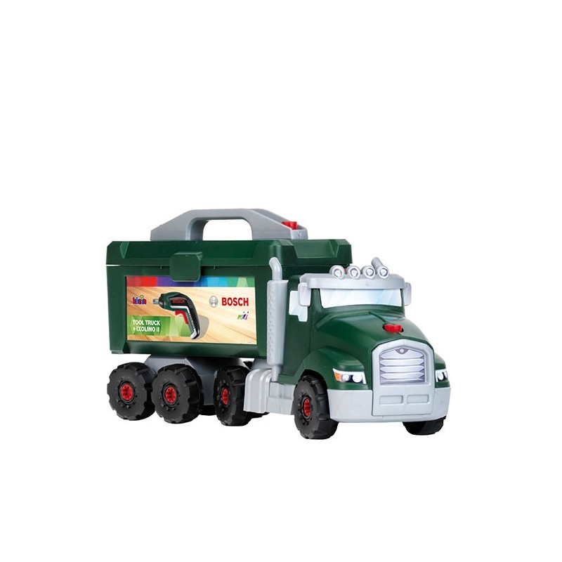 Jucaria mai contine surubelnita fara fir Ixolino, cutia de unelte detasabila, remorca, macaraua, stivuitorul cu palet, doua cutii pliabile, toate acestea oferind nenumarate optiuni pentru configurare si joc.