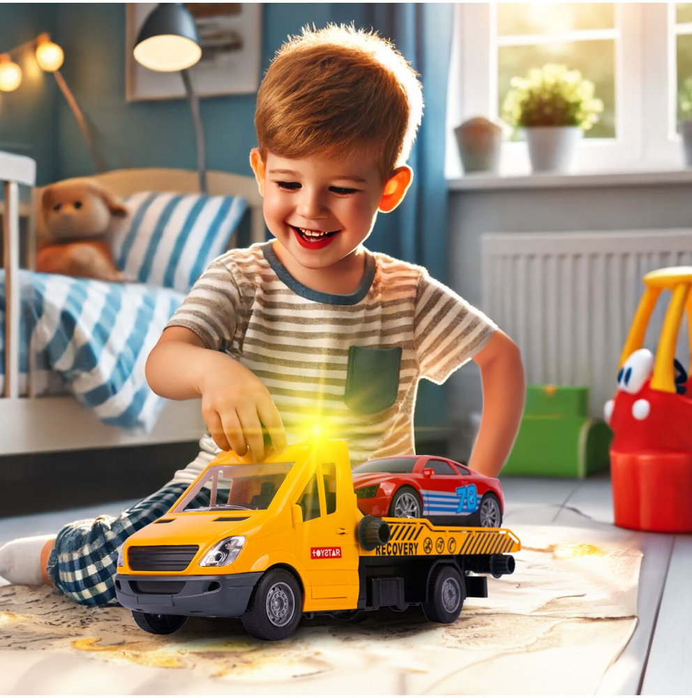 Efecte sonore si lumini: Sunete realiste de motor, claxon si remorcare, combinate cu lumini LED intermitente, pentru o experienta de joc autentica.