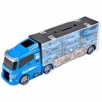 * Camionul are si un maner care faciliteaza transportul jucariei, iar datorita faptului ca masinile sunt ascunse in el, poti economisi spatiu si in acelasi timp expune vehiculele printr-un geam transparent, din plastic.