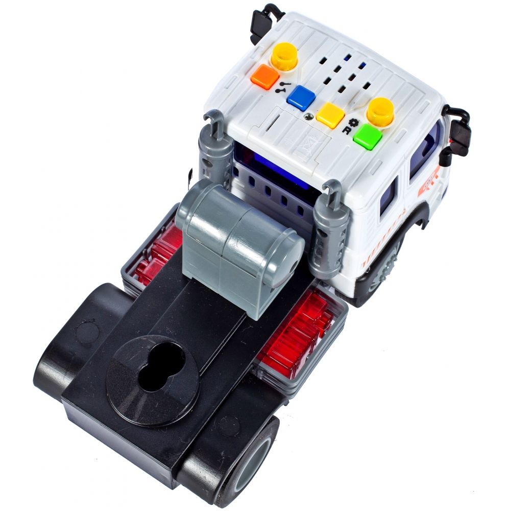 * Acest set de joaca complex, format dintr-un camion transportor si o remorca cu 4 masini, promite ore intregi de distractie creativa pentru micii soferi. Iata o descriere detaliata a caracteristicilor sale: