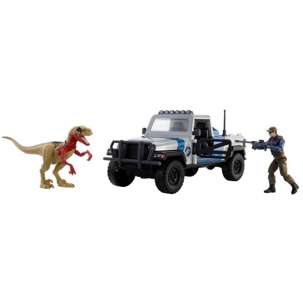 Acest set de jucarii Jurassic World Search 'N Smash Truck&trade include un vehicul off-road cu o distrugere dramatica, o capota frontala care se sparge si cu un dinozaur Atrociraptor si o figurina de mercenari cu accesorii.
