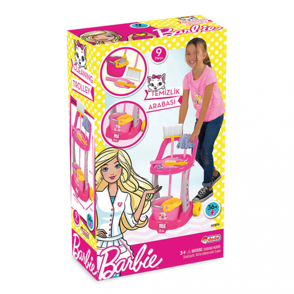 Set carucior de curatenie cu 5 piese pentru copii Barbie