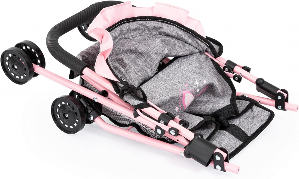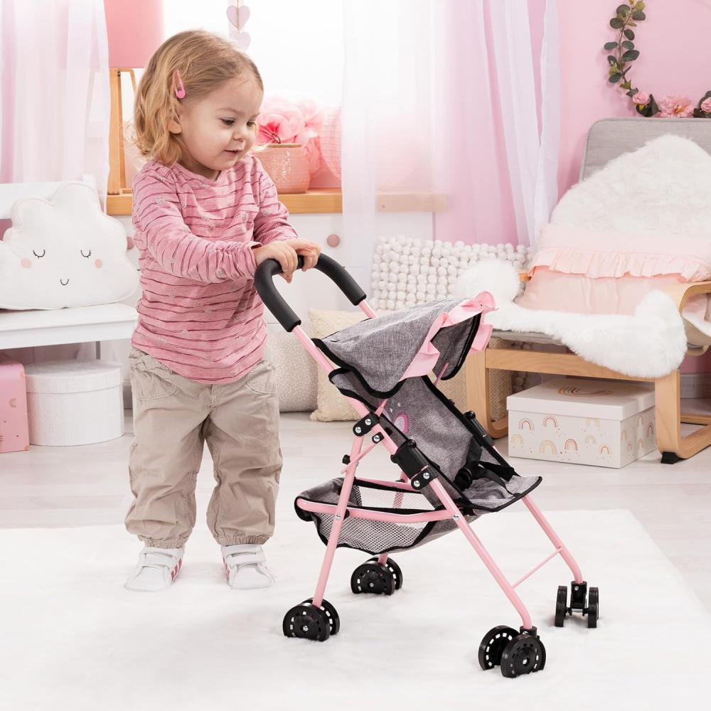 - Papusa preferata poate fi plimbata in caruciorul dragut pentru papusi cu roti duble.