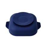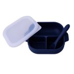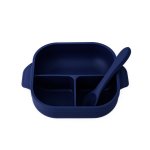 Set castron, farfurie cu ventuza, lingurita si capac bleumarin