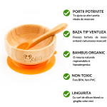Castron din bambus si farfurie iepuras din bambus organic, un material prietenos cu natura fiind ideale pentru diversificarea de la 6 luni.