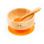 Set castron si farfurie iepuras din bambus cu lingurita Oaki pentru copii portocaliu