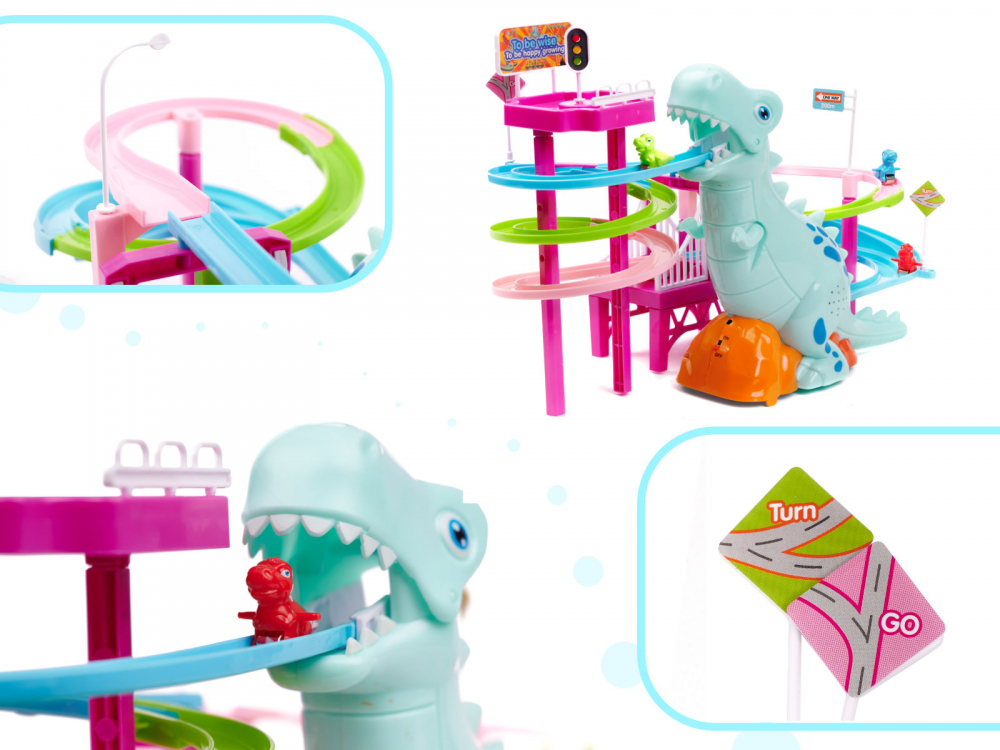 * Set circuit interactiv Dinozauri cu sunete si lumini, combină lumea dinozaurilor cu tehnologia, oferind copiilor ore întregi de distracție și învățare.