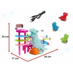 Set circuit interactiv pentru copii, Ikonka Dino, dimensiune 39 x 17.5 x 24 cm, cu 3 dinozauri mici multicolori inclusi, efecte sonore, cablu usb