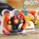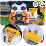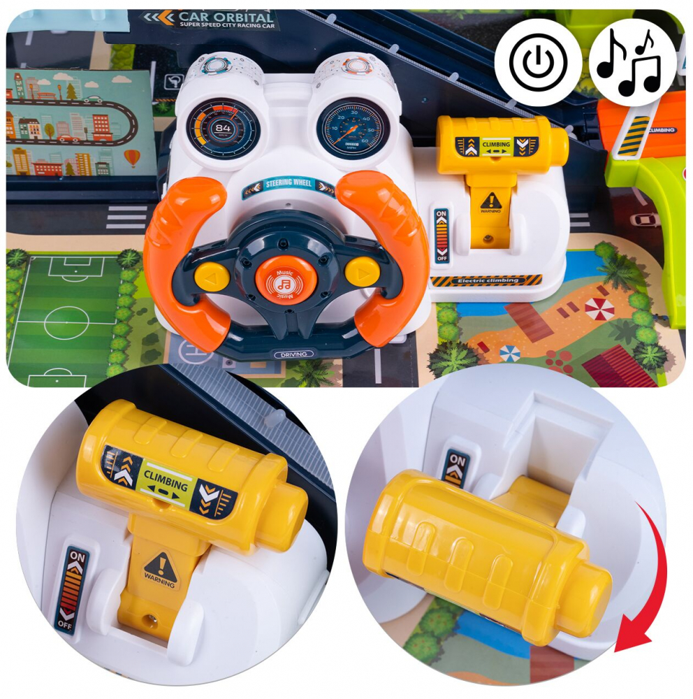 * Cu un volan care emite sunete realiste si un covoras care dezvaluie o harta a orasului, imaginatia nu are limite. Perfect pentru a stimula creativitatea si coordonarea mana-ochi!