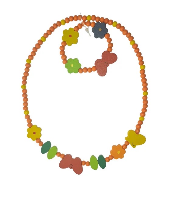 Va oferim acest set colorat de colier si bratara cu pandative si margele din lemn.