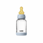 Set complet biberon din sticla anticolici cu tetina din latex, flux lent, 120 ml, Baby Blue