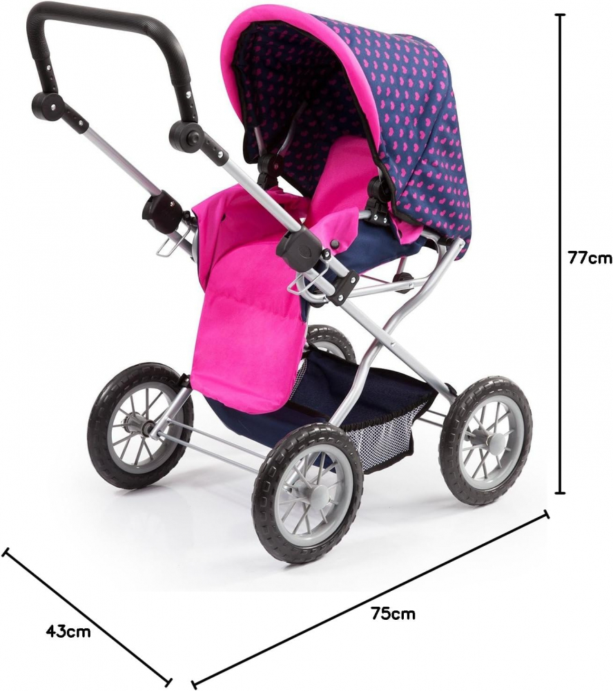 - Manerul caruciorului papusii este reglabil de la 46 - 75 cm, astfel incat inaltimea perfecta de impingere poate fi gasita rapid.