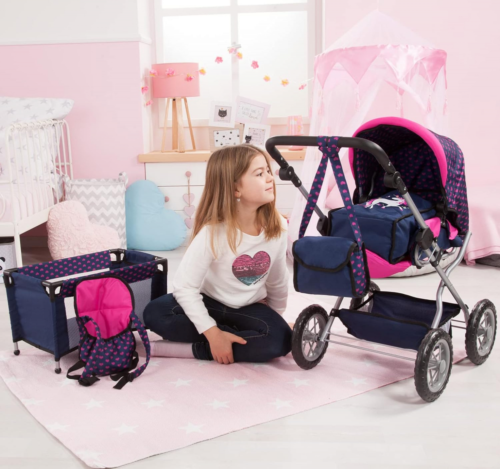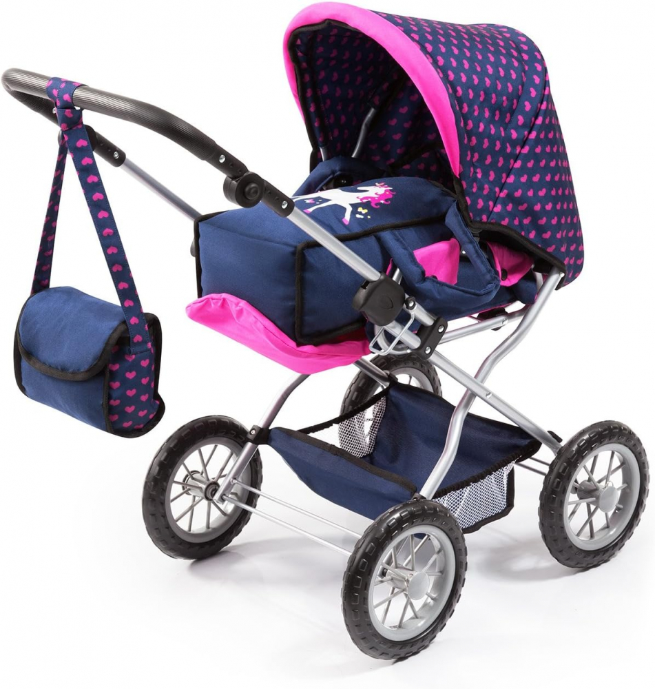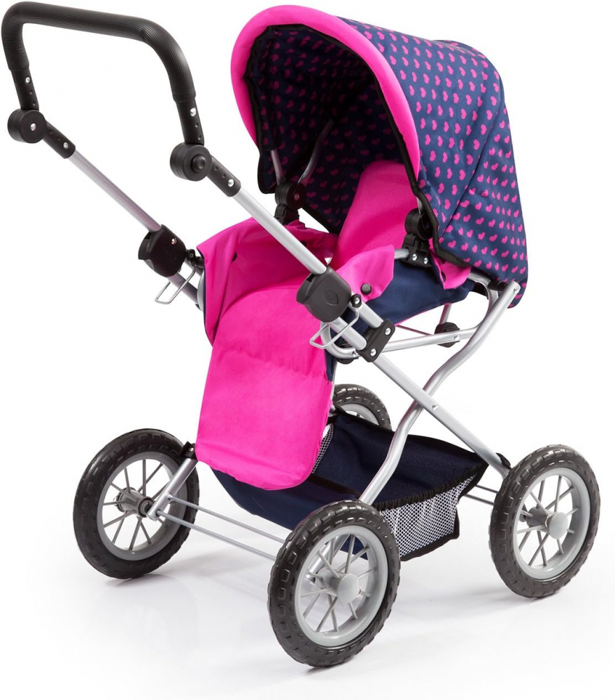 - Datorita anvelopelor mari, caruciorul papusii poate fi impins cu usurinta chiar si pe terenuri denivelate.
