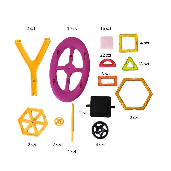 - Setul include piese colorate, dotate cu magneti puternici, permitand copiilor sa construiasca absolut orice isi pot imagina.