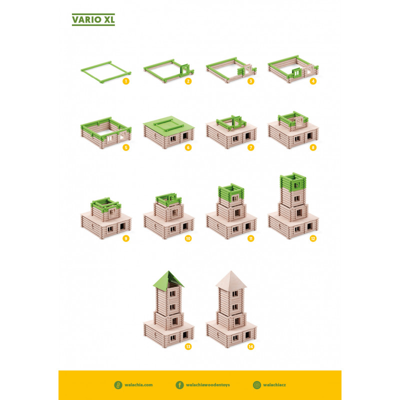 Set constructie arhitectura Vario XL, 184 piese din lemn, Walachia