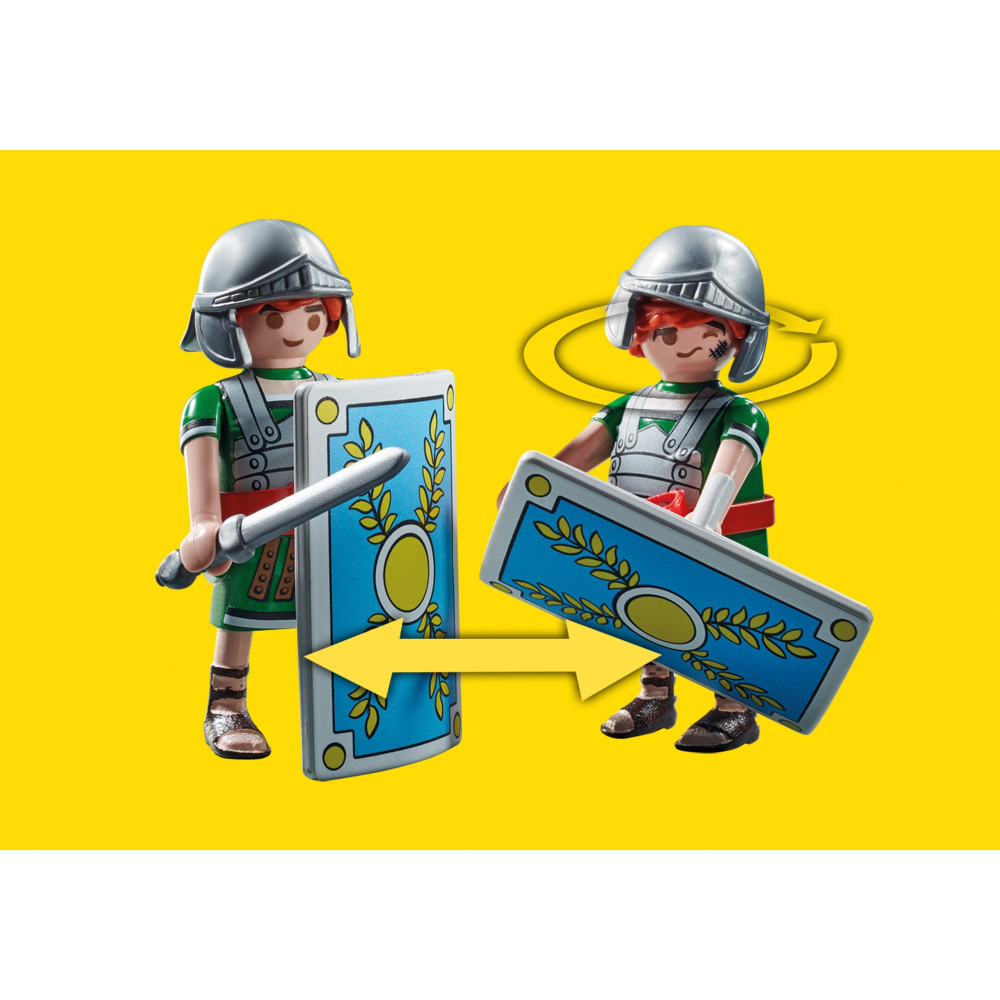Setul Asterix din 56 de piese include 5 figurine PLAYMOBIL, Obelix, Edifis, Dogmatix si 3 romani, o catapulta, coloane, pietre si alte accesorii pentru a relua Batalia pentru Palat.