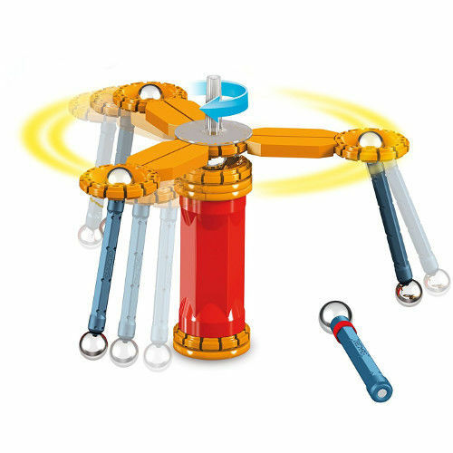 - Prin identificarea celor doi poli magnetici (nord/sud), copiii pot construi modele functionale in multe forme si dimensiuni, toate folosind forta magnetica potrivita pentru a le retine sau pentru a le repune in miscare.
