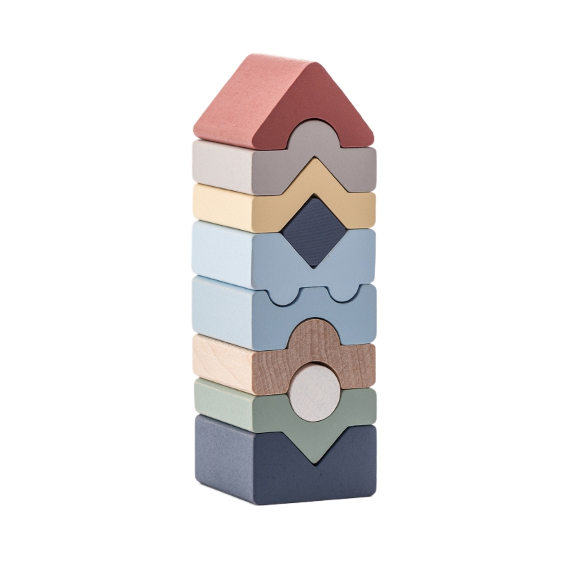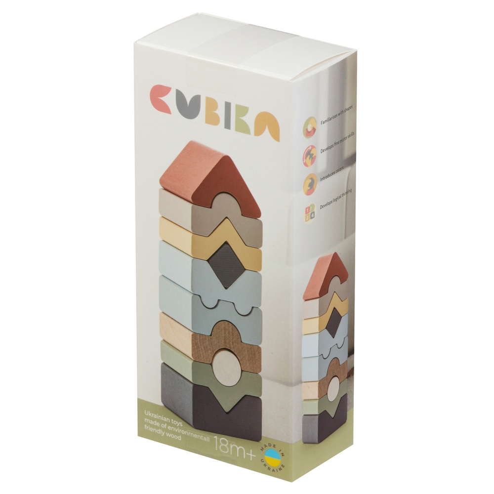 Jucarie Din Lemn Cubika, Set Constructii Turn - 10 Piese