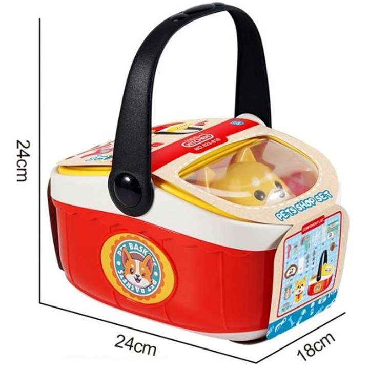 Set cos transport Catelus cu 15 accesorii Pet Basket