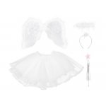 Set costum de carnaval pentru copii model Ingeras, cu aripioare, fustita, bagheta si aureola incluse