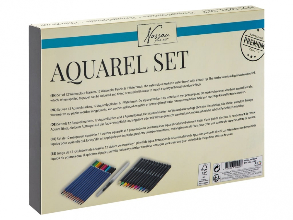 Set creativ 12 carioci acuarela, 12 creioane colorate si pensula Nassau
