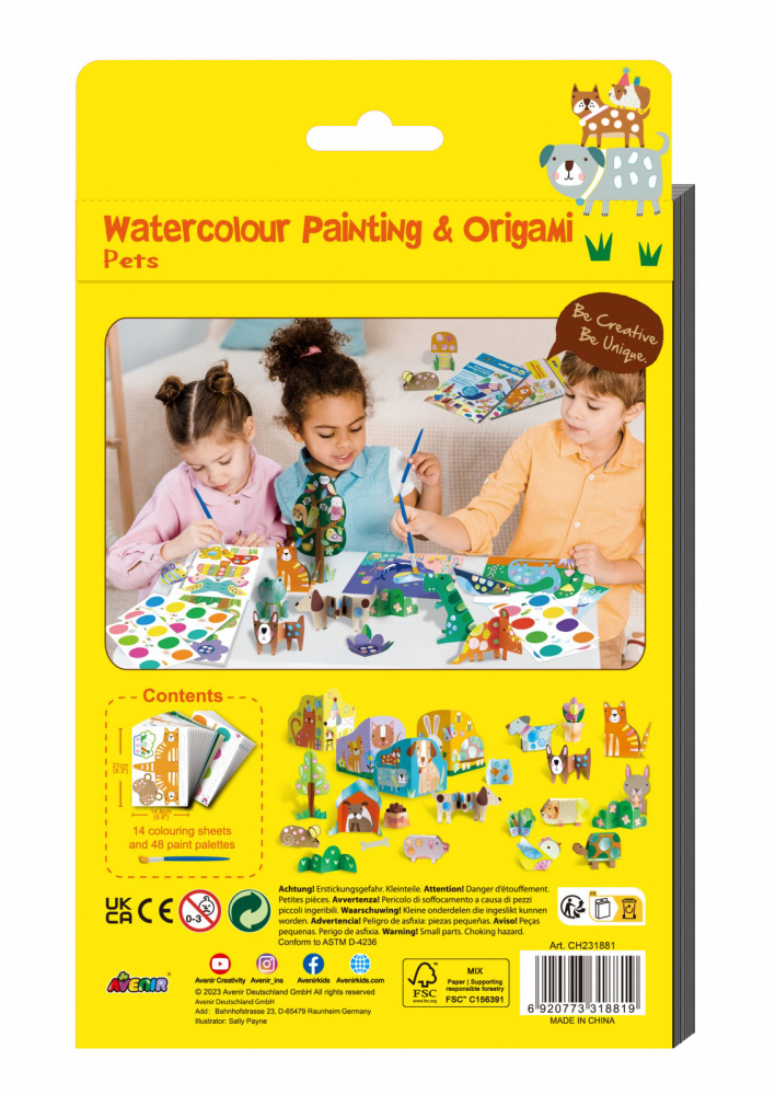 Această combinație inovatoare îți oferă posibilitatea de a te bucura de pictură în acuarelă și de o activitate simplă de origami, totul într-un singur set.