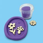Contine: forme din lemn natura; 2 vase cu plastilina liliac (2x90gr); ipsos; 6 culori de vopsea; pensula; spatula; bat de zgarieturi din lemn; smirghel; instructiuni.