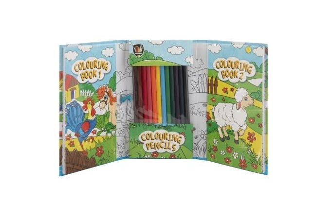 Set creativ de buzunar cu 2 carti de colorat si creioane animale de la ferma Grafix