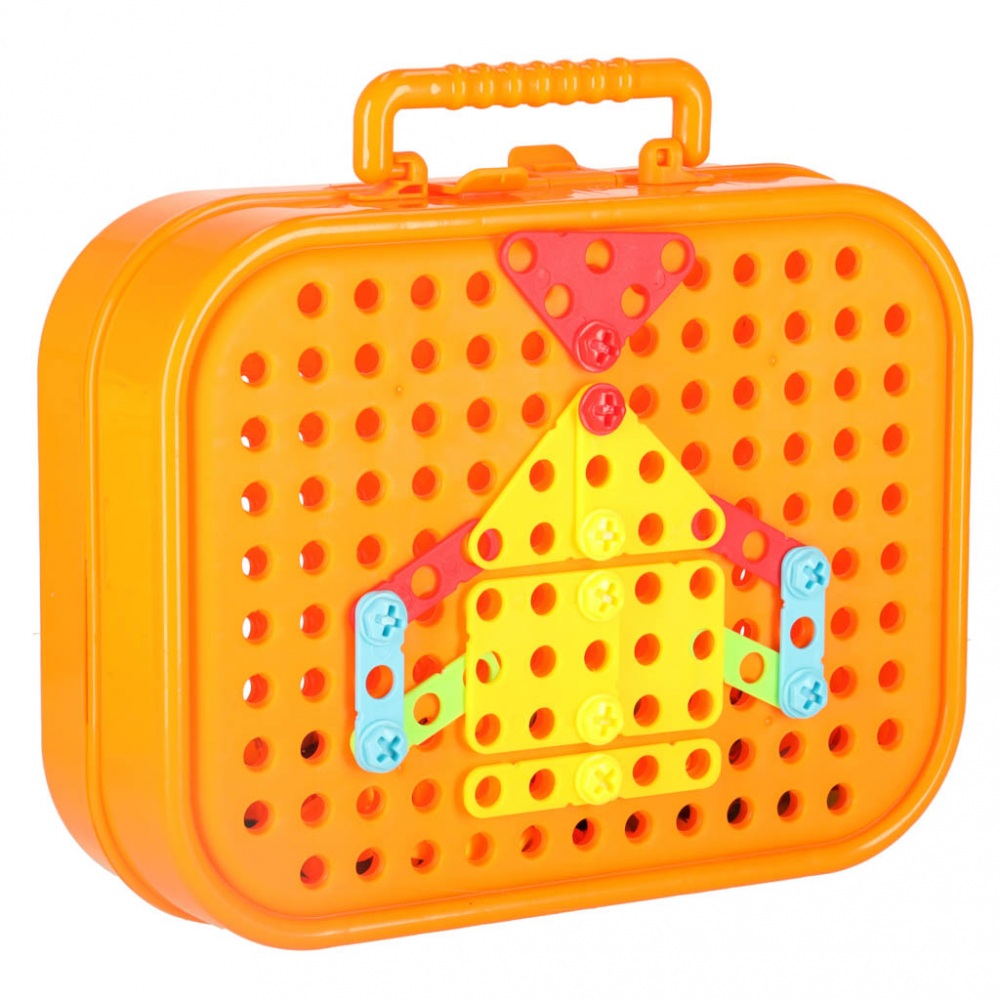 * Carcasa din plastic are doua functii: drept loc de depozitare pentru piese, dar si ca o placa pentru joaca.
