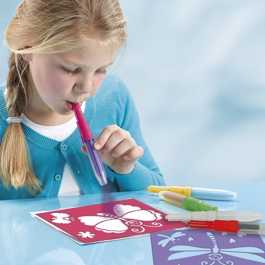 Set creativ de desenat cu sabloane si carioci spray Magic Spray pens
