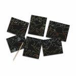Cu ajutorul stiloului razuibil din lemn, copiii pot zgâria modele, pene și solzi și pot descoperi toate detaliile ascunse sub stratul negru ale planselor razuibile.