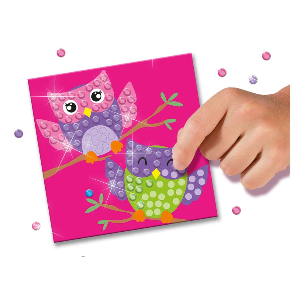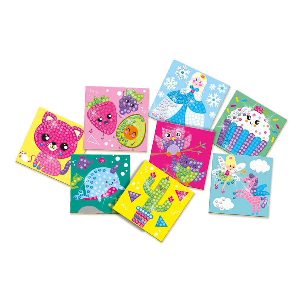 Diamantele stralucitoare sunt autoadezive si foarte usor de lipit pe cartonasele colorate.