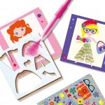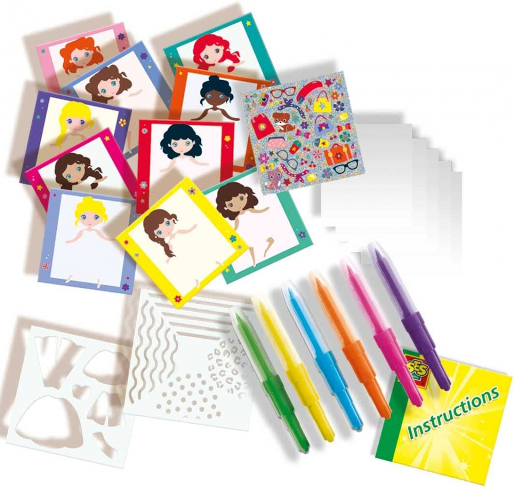 Doar sa apuci cele sase markere colorate de suflare cu aerograf si sa crezi tinute fantastice cu sabloanele si foile de acoperire.