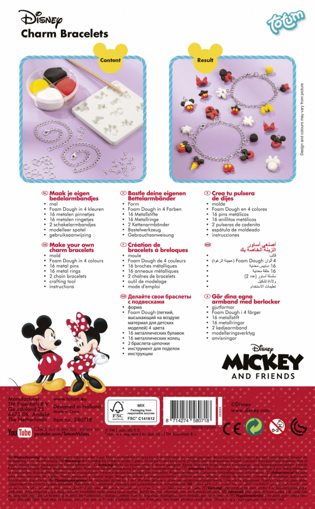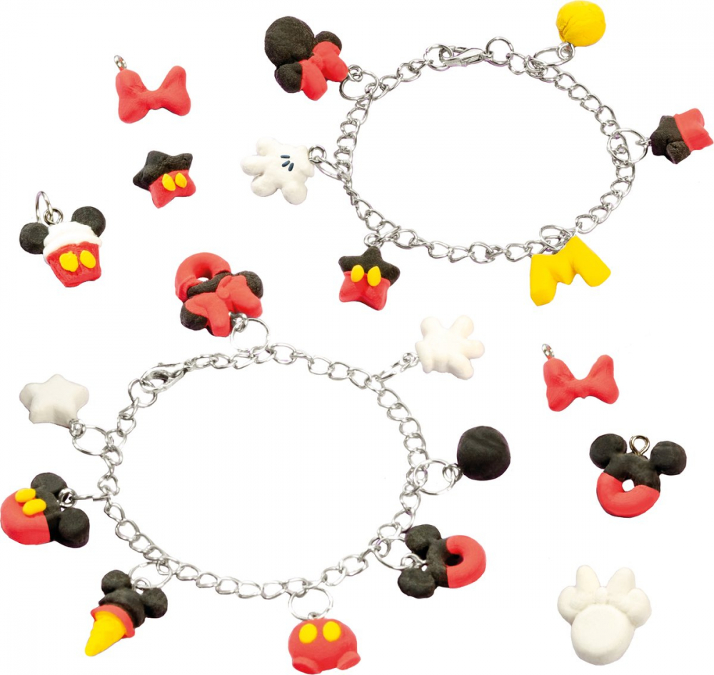 Creaza cu ajutorul sabloanelor si plastilinei incluse pandantive unice pe care sa le folosesti la cele 2 bratari cu tema Mickey si prietenii!
